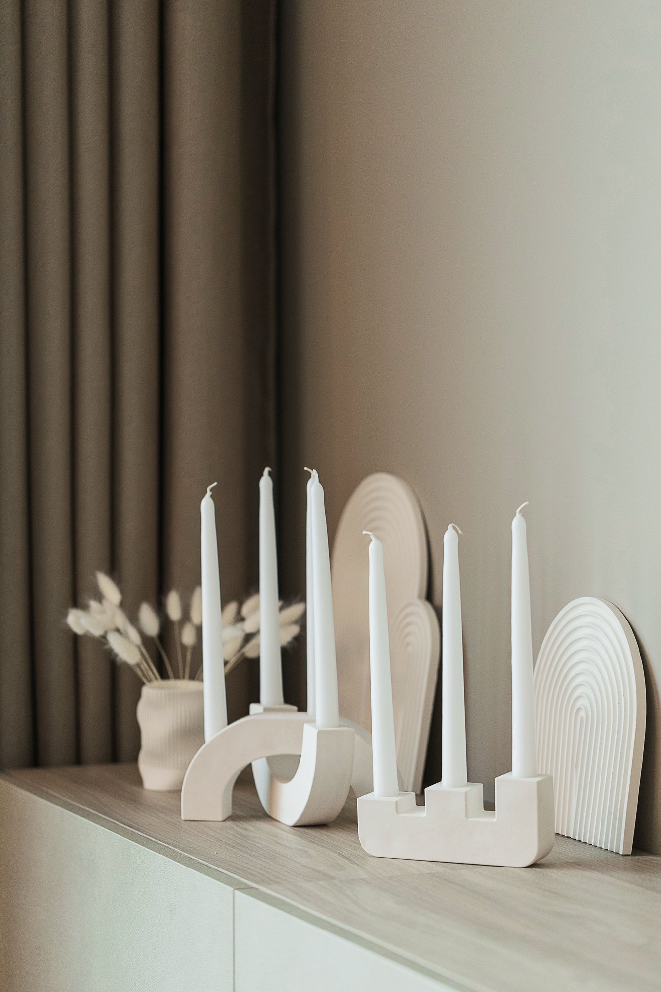 Hergestellt aus hochwertigem Gips, ist jeder Kerzenständer sorgfältig geformt und bis zur Perfektion verarbeitet, wobei seine natürliche Textur zur Geltung kommt. Seine robuste Konstruktion sorgt für Stabilität, während das zeitlose Design eine Vielzahl von Einrichtungsstilen ergänzt.