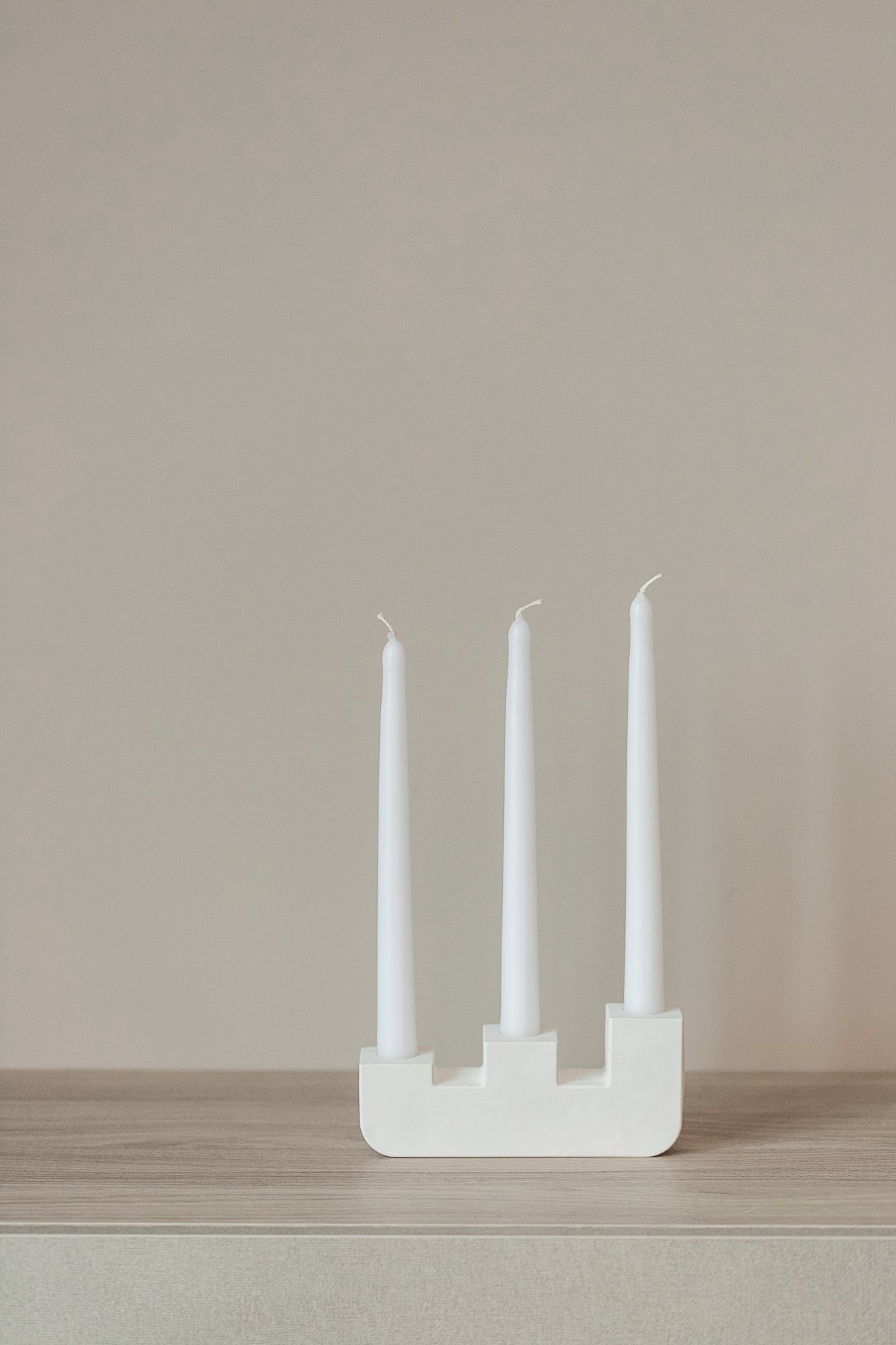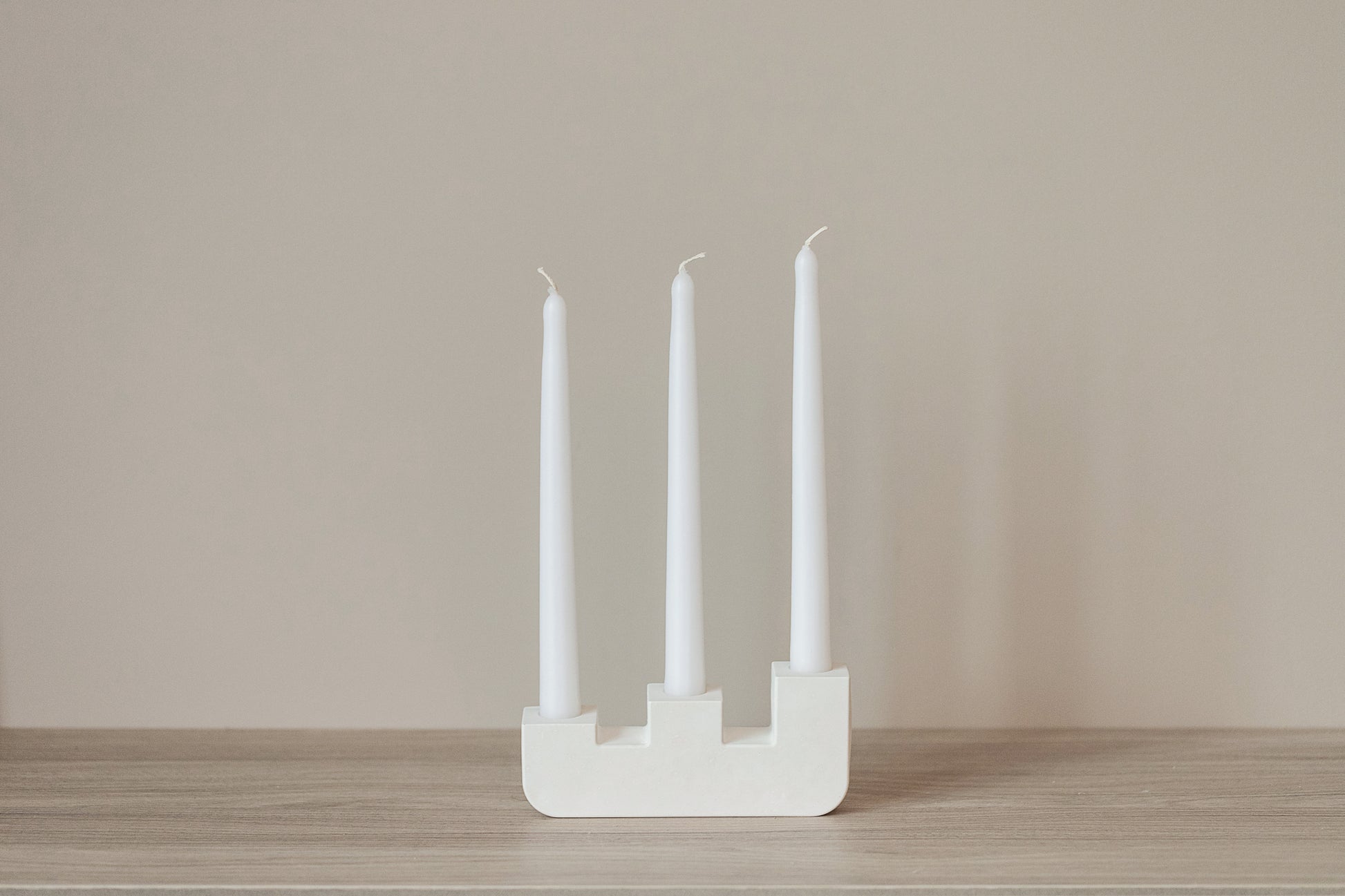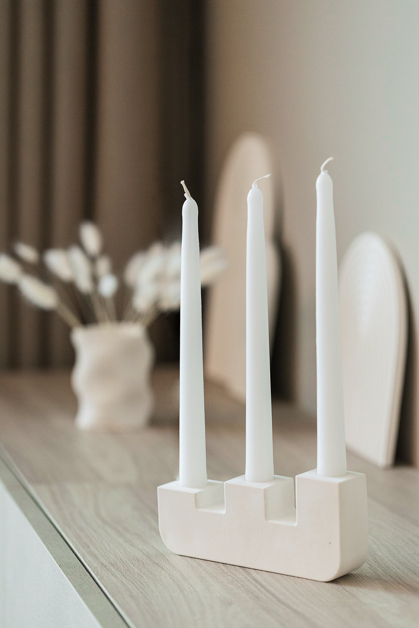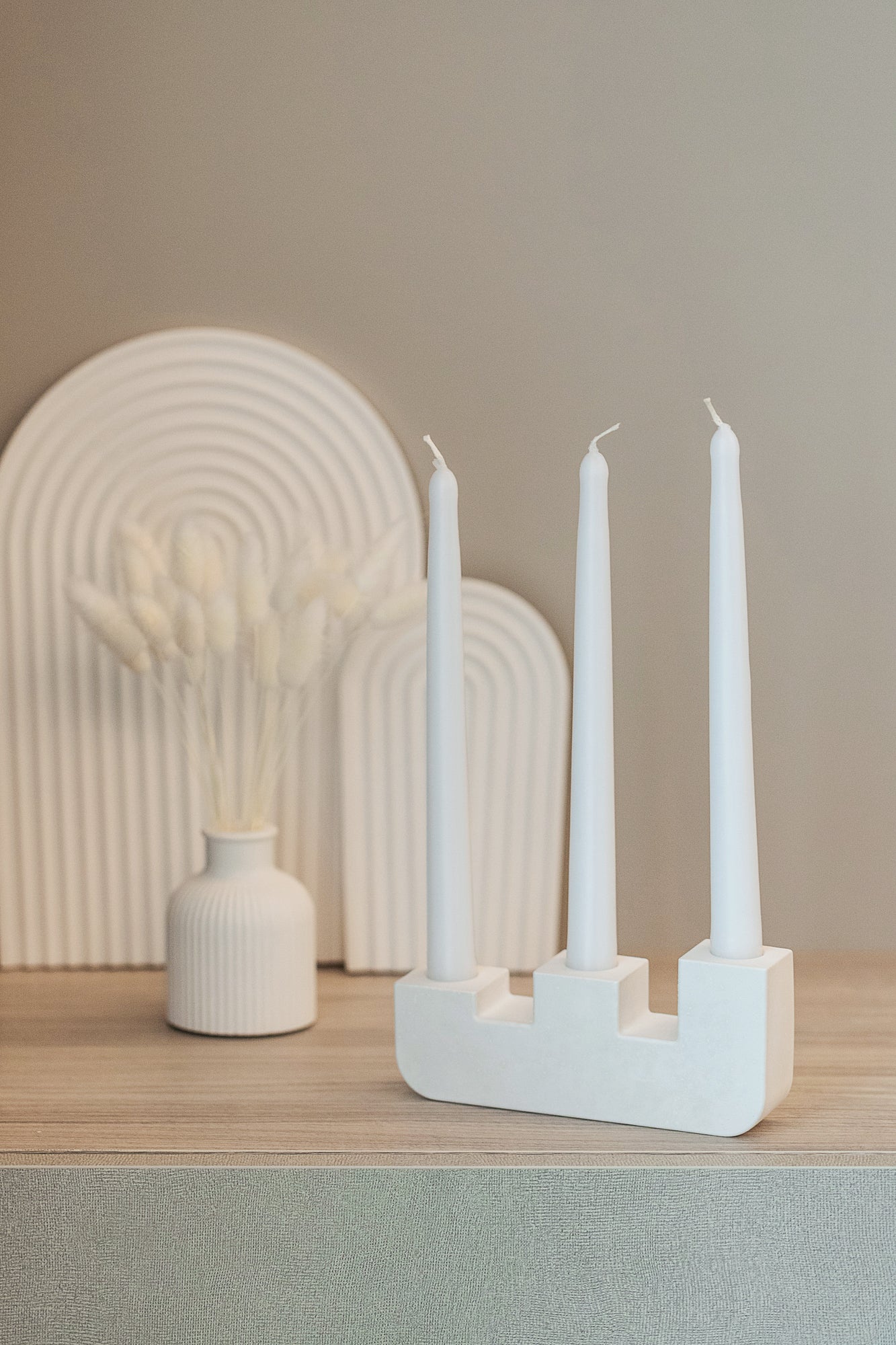 Handgefertigter Gips-Kerzenhalter für drei lange Kerzen