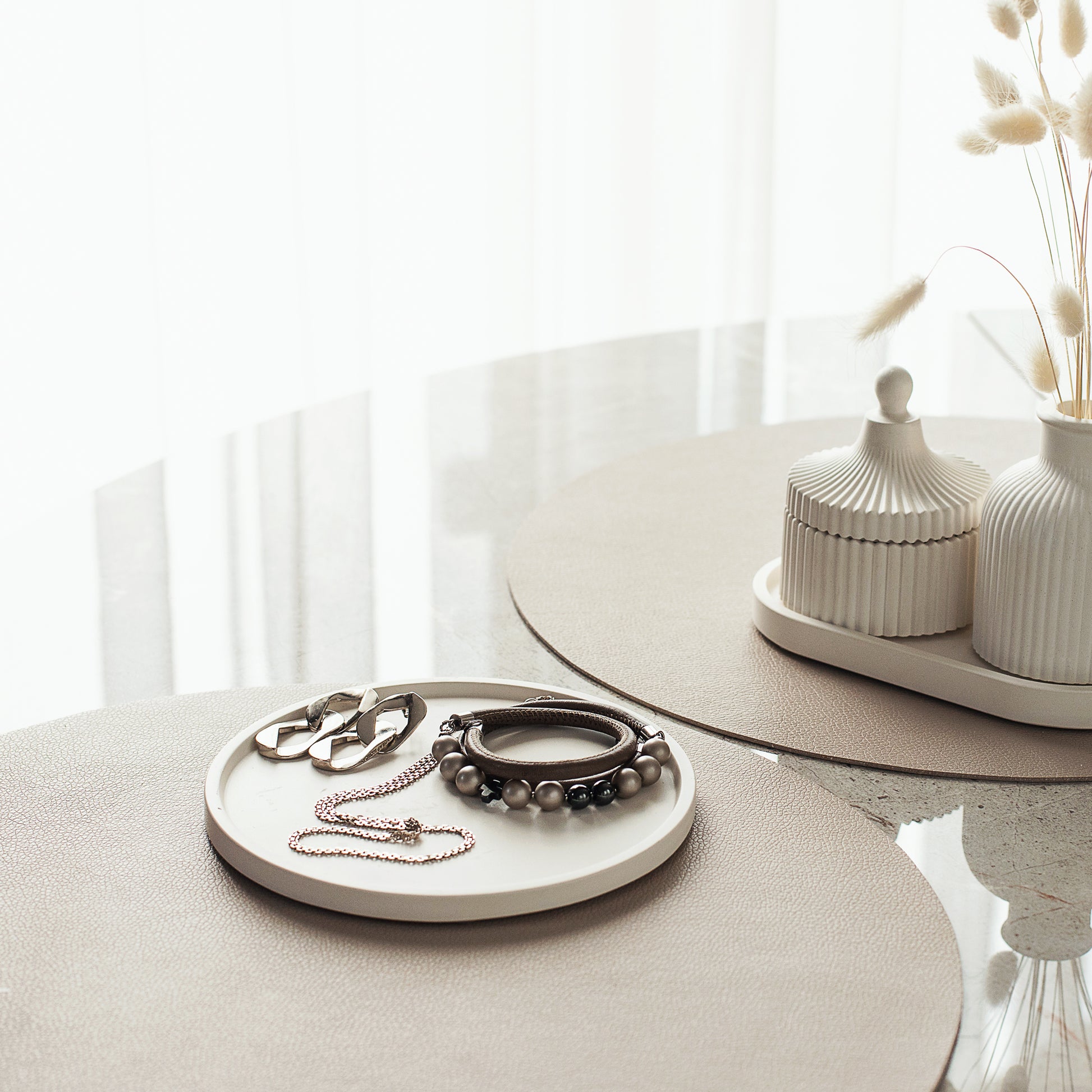 Rundes Gips-Tablett für Kerzen, Schmuck, Raumdüfte