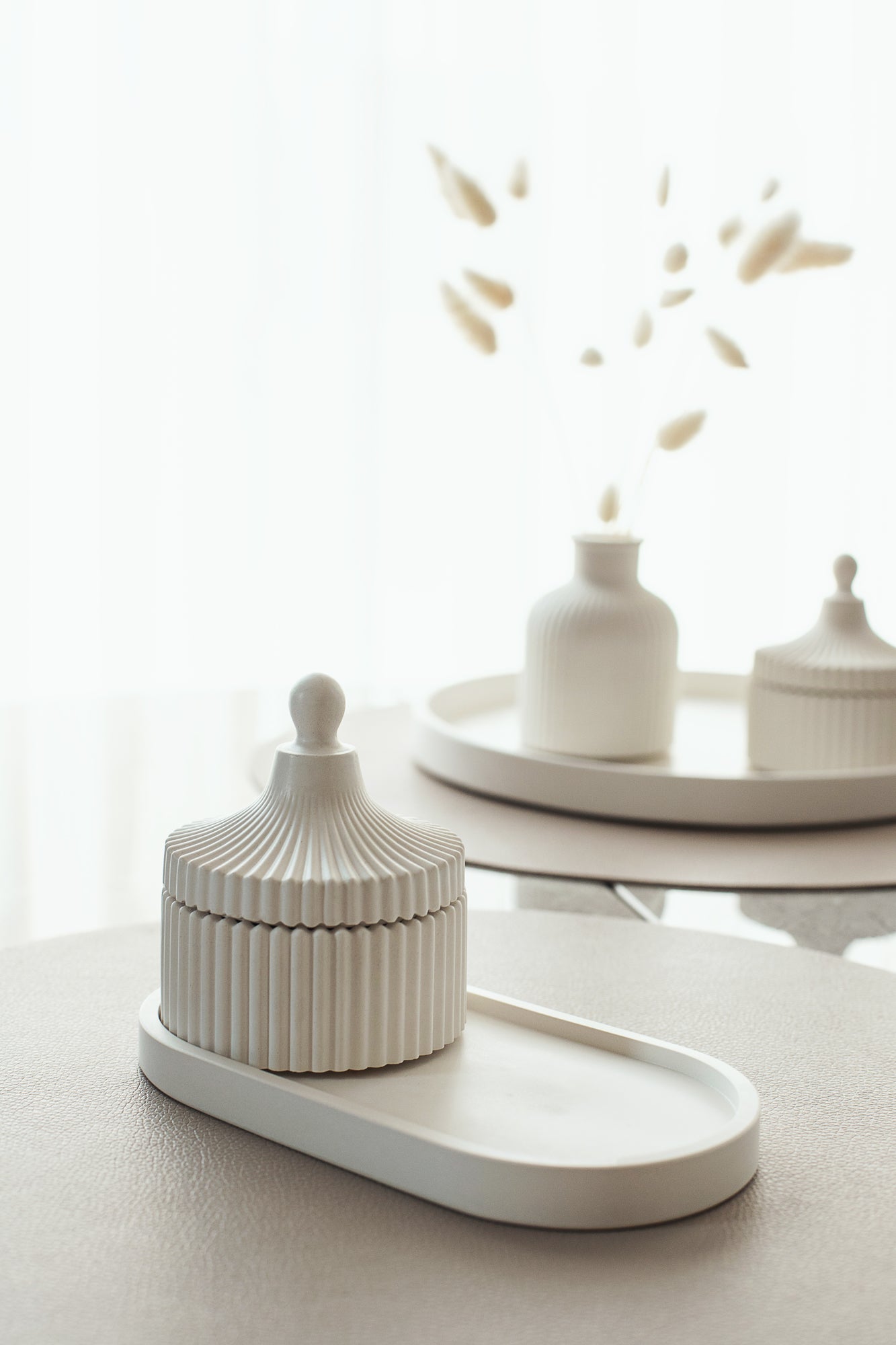 Erleben Sie die perfekte Mischung aus Eleganz und Ruhe mit unserem Duftkerzen- und Tablett-Set. Untergebracht in einem wunderschön handgefertigten Gipsglas ist diese Kerze mehr als nur eine Quelle fesselnder Düfte — sie ist ein Statement-Stück, das jedem Raum einen Hauch von Raffinesse verleiht.