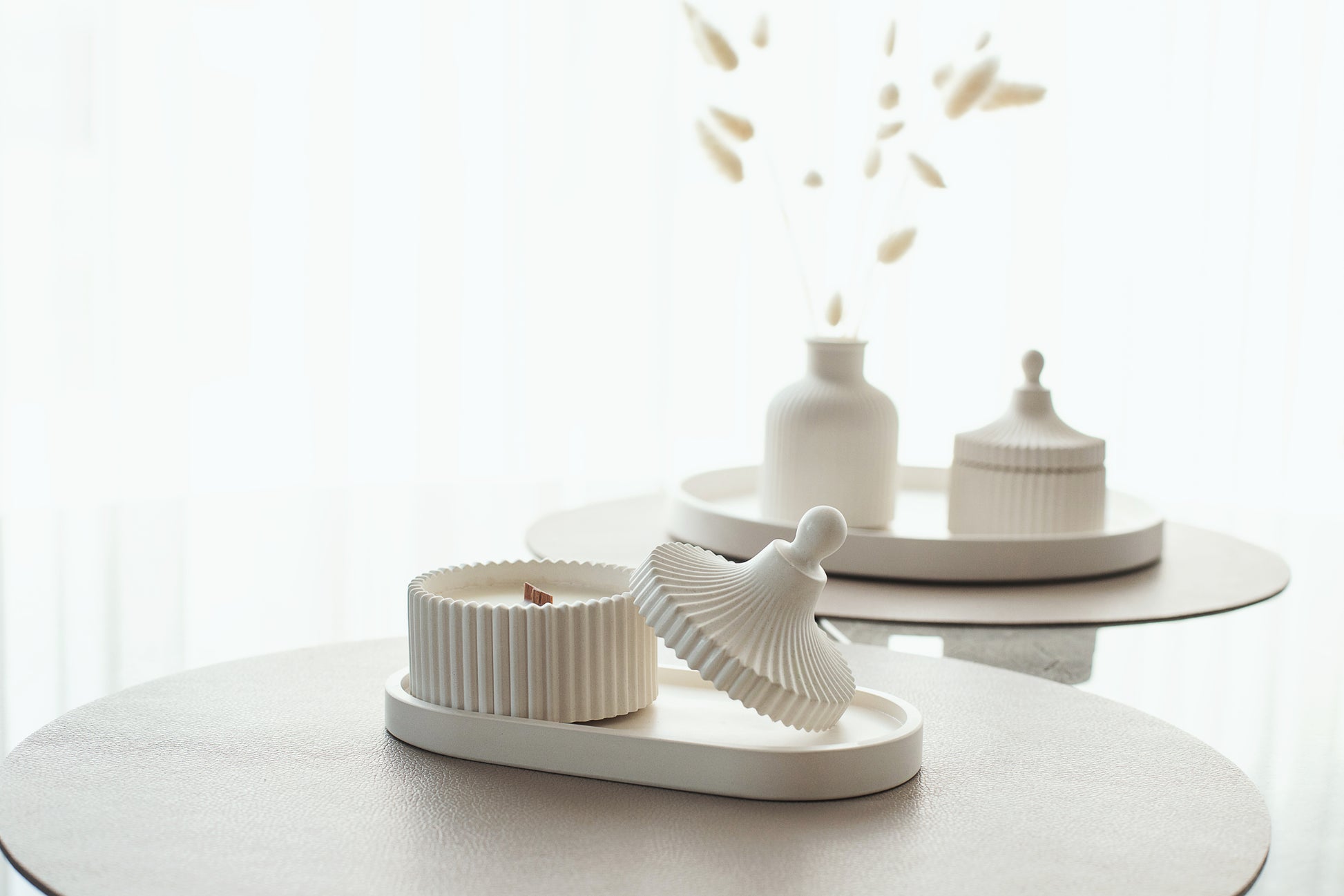 Duftkerzen- und Tablett-Set Handgemacht aus Kokoswachs, Aromaölen & Holzdocht